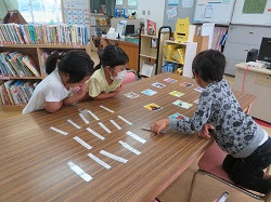 1年生の国語では、初めての説明文の学習が終わりました。3つの「くちばし」について書かれているお話でした。9日には、学校司書の上嶋先生による「くちばしクイズ」がありました。教科書に載っていない鳥について、本で紹介をしていただいた後、それらの本に書かれていた内容をもとに、くちばしの絵と特徴が書かれたカードを組み合わせるというクイズで楽しく学習をしました。